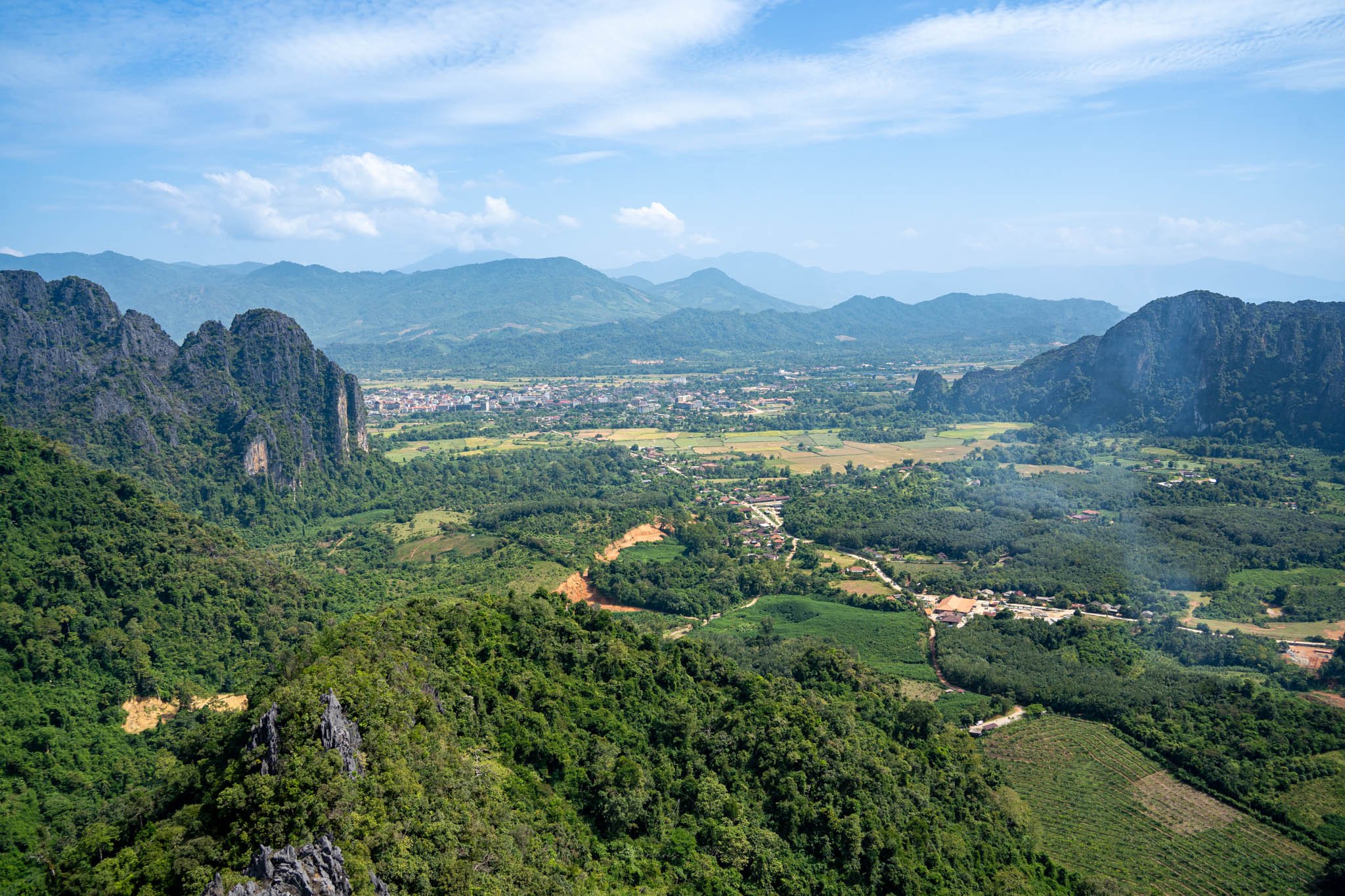 No-one can ever say that the town of Vang Vieng is a looker, but the town itself isn’t why you’re there - it’s the countryside around it. As you leave the droves of tourists, 4x4s and minivans behind and head a little deeper down the valley, you’ll find empty roads, beautiful paddy fields, small villages and towering limestone cliffs. The views over the countryside from the top of the viewpoints are amazing and worth a trip to Vang Vieng just by themselves.